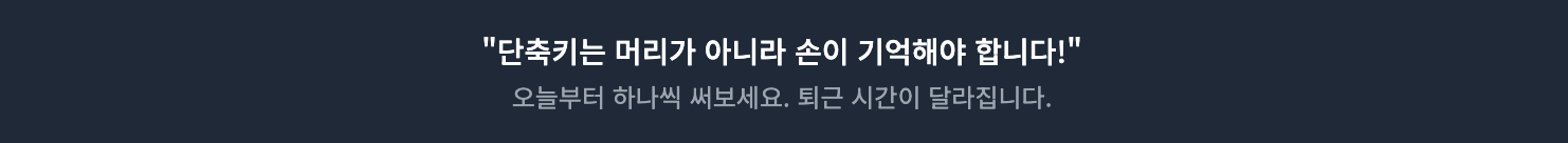 일주일만 의식적으로 사용하면, 어느새 마우스보다 키보드가 편해진 자신을 발견하게 될 것입니다.